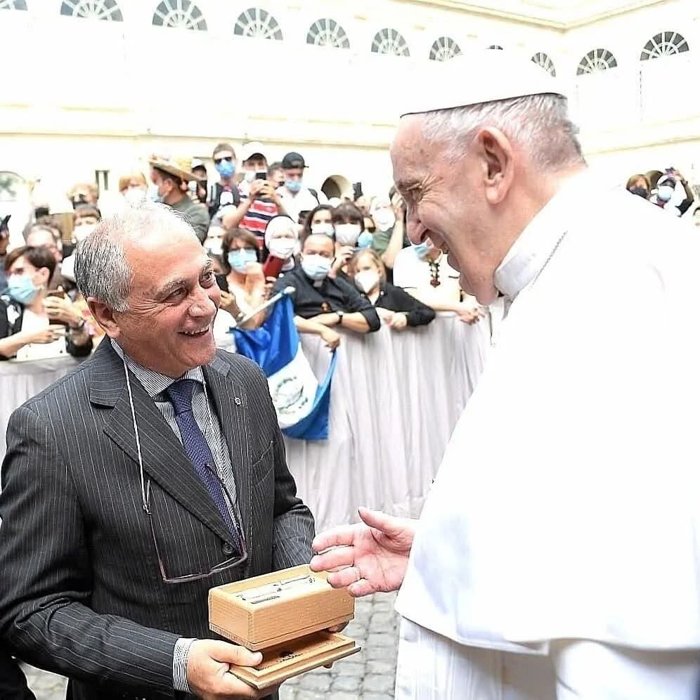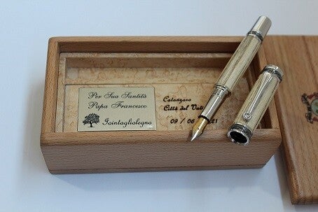09.06.2021 Consegna nelle mani di Papa Francesco la penna stilografica realizzata per lui, dal maestro d'Arte Francesco Scarpino, artigiano catanzarese.